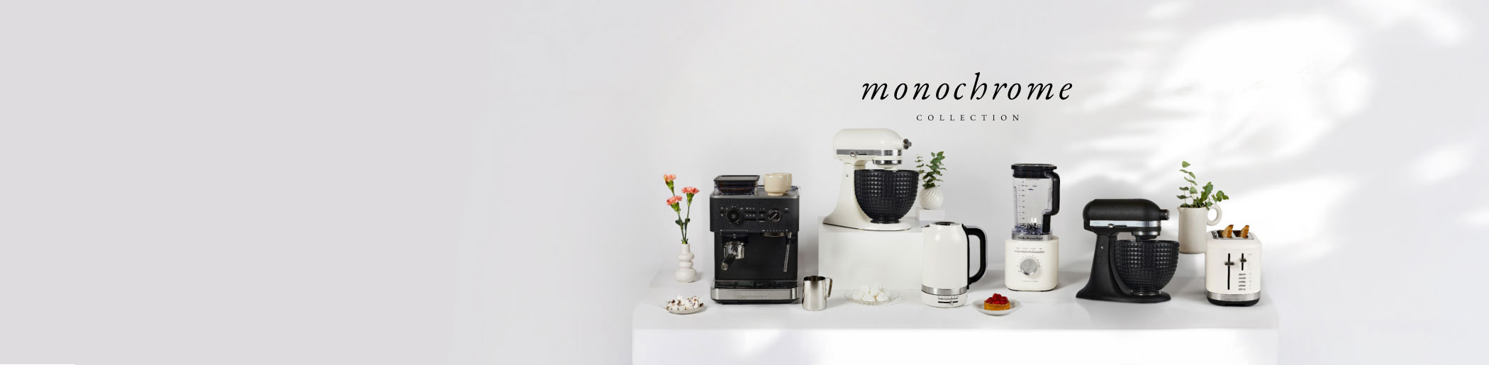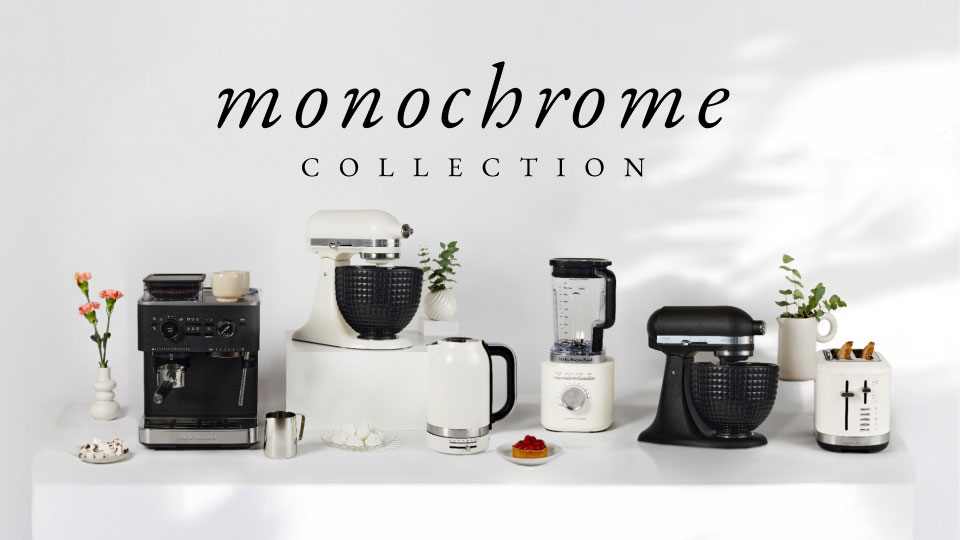Design épuré, élégance sans effort. Avec ses finitions soignées et ses couleurs intemporelles, la collection Monochrome prouve que le minimalisme captive tout autant. Que vous préfériez le noir intense, le blanc délicat ou un mélange des deux, ces robots pâtissiers et d’autres essentiels de cuisine sont conçus pour se fondre dans le décor… tout en attirant les regards.