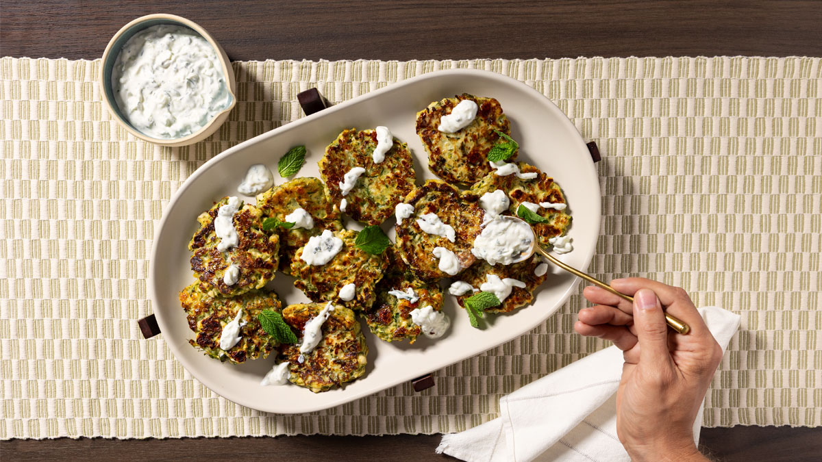 Beignets de courgettes à la menthe avec sauce au yaourt et à la menthe